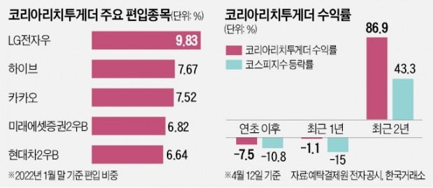 강방천 회장은 위의 선별원칙을 바탕으로 자신의 에셋플러스자산운용에서 출시한 펀드에 다음과 같은 종목의 우선주를 보유하고 있습니다. 코리아리치투게더에서 보유하고 있는 종목은 LG전자우, 미래에셋증권우, 현대차우, CJ제일제당우 를 보유하고 있습니다. 이와 같은 종목은 보통주 대비 50% 수준의 주가를 형성하고 있고 향후 보통주와 주가차이를 좁혀갈 것으로 예상하고 있습니다.