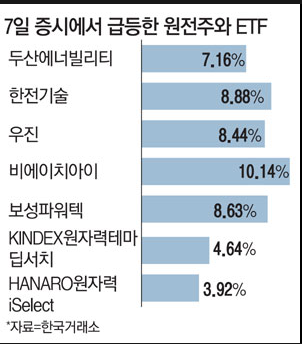 정부의 신규원전 건설 발표에 시장은 열광적으로 반응했어요. 관련 기업들의 주가가 급등했습니다.