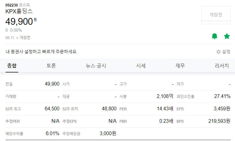 케이피엑스홀딩스의 시가배당률은 6%입니다. 주가 5만원 기준인데 매분기별로 배당금을 750원씩 지급하고 있습니다. 주가가 흘러 내리고 있고 매출액과 영업이익은 22년 대비 약간 상승하는 분위기라 주가가 내리면 배당수익률은 올라 갑니다. 내리는 주가는 언젠가 바닥을 칠 것이고 낮은 주가에서 투자한 금액은 황금알을 낳는 거위가 될 것입니다.