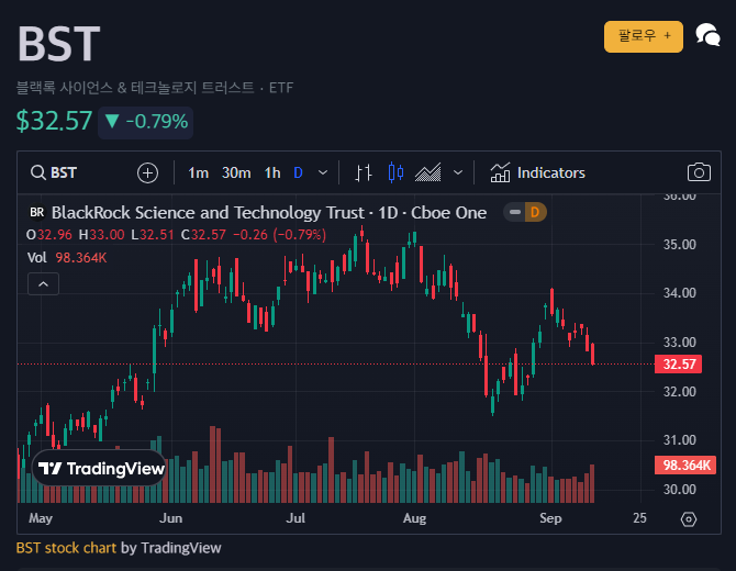 BlackRock Science & Technology Trust (BST)는 폐쇄형 펀드인 CEF로서, BlackRock이 운용하는 과학 기술 분야의 주식에 투자하는 펀드입니다. 이 펀드는 기술 기업 및 선진 기술 분야에 투자하고 있습니다. 미국 주식시장에서 거래되며, 주식 가격 변동과 배당을 통해 투자 수익을 창출합니다. 현대 시가배당률은 9.2%가 넘습니다. 가격이 하락하게 되면 10%대 배당수익률도 가능할 것으로 예상합니다.