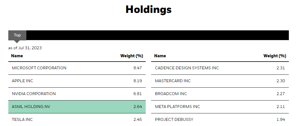 BST의 구성종목은 과학 기술 분야의 기업에 투자하는 것이 주된 목적이기 때문에 정보 기술, 의료 기술, 통신 기술, 반도체, 인공 지능 및 다른 관련 분야에 속하는 기업들로 구성되어 있습니다.