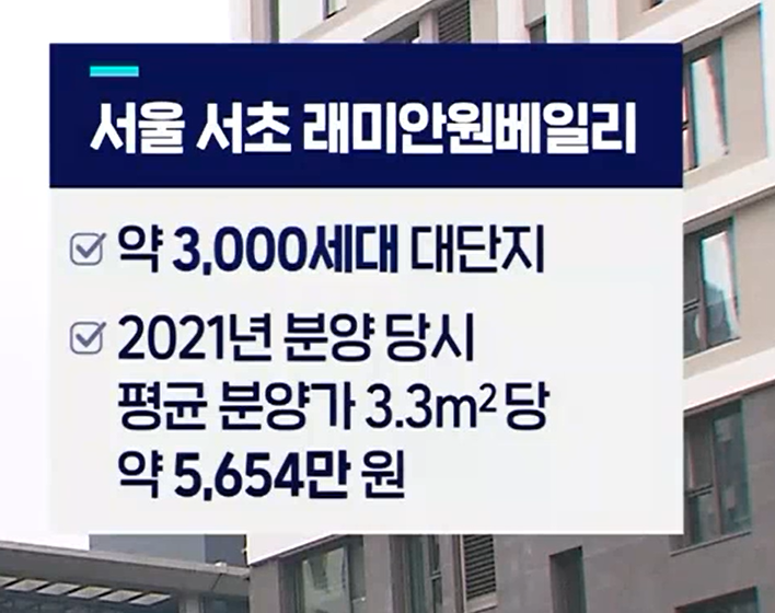 지난달부터 입주가 시작된 서울 반포동 원베일리 아파트는 약 3,000 세대로 대규모 아파트입니다. 2021년에 분양될 때, 1제곱미터당 평균 분양가가 5,600만 원을 넘어선 '역대 최고'라는 평가를 받았던 곳이었습니다.