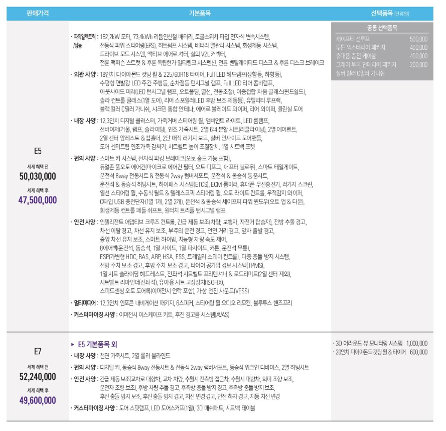 마지막으로, 이 모델은 다양한 주행 안전 보조 시스템도 갖추고 있으며, 긴급 상황에서 차량을 탈출할 수 있도록 긴급 구난장치와 외부에서 후진할 때 알림을 주는 후진 경고음 시스템(AVAS)을 포함하고 있습니다.