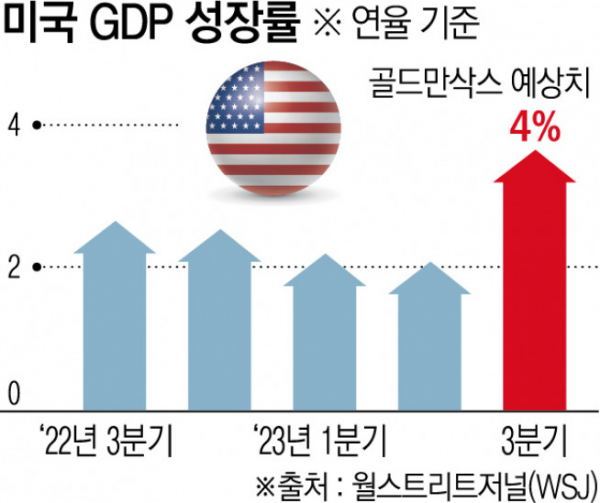 일부 전문가들은 고금리 지속에도 불구하고 미국 경제가 양호한 성장률을 유지하며 경기 전망이 밝아지고 있다고 주장하고 있습니다. 경기침체에 대한 우려보다는 '골디락스(이상적인 경제 상황)' 상황이 가능성으로 제기되기도 합니다. 투자은행과 경제 자문 업체들은 미국 경제의 GDP 성장률을 상향 조정하고 있습니다.