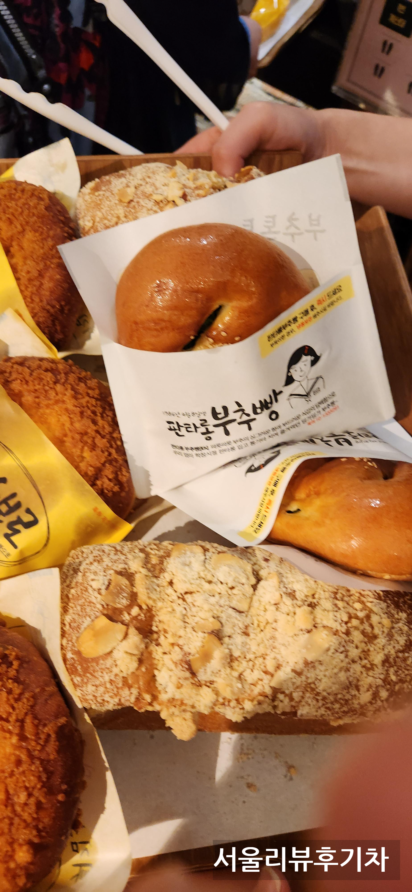 빵 종류는 엄청 많습니다. 인기가 많은 명란빵은 금방 품절 나요.