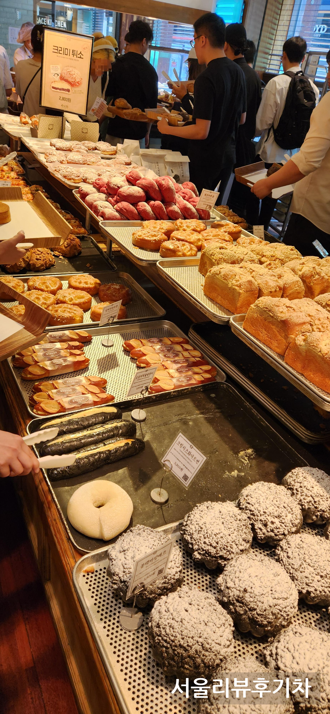 빵가격도 싸고 유명한 빵집이라 그런지 다들 한가득 쟁반에 담아 계산합니다.