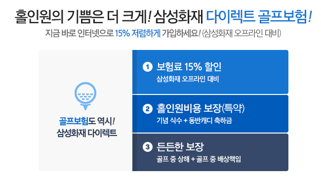 경제적인 보험료로 다양한 상해 및 배상 상황에 대비할 수 있는 종합적인 골프보험, 삼성화재 다이렉트 골프보험입니다.