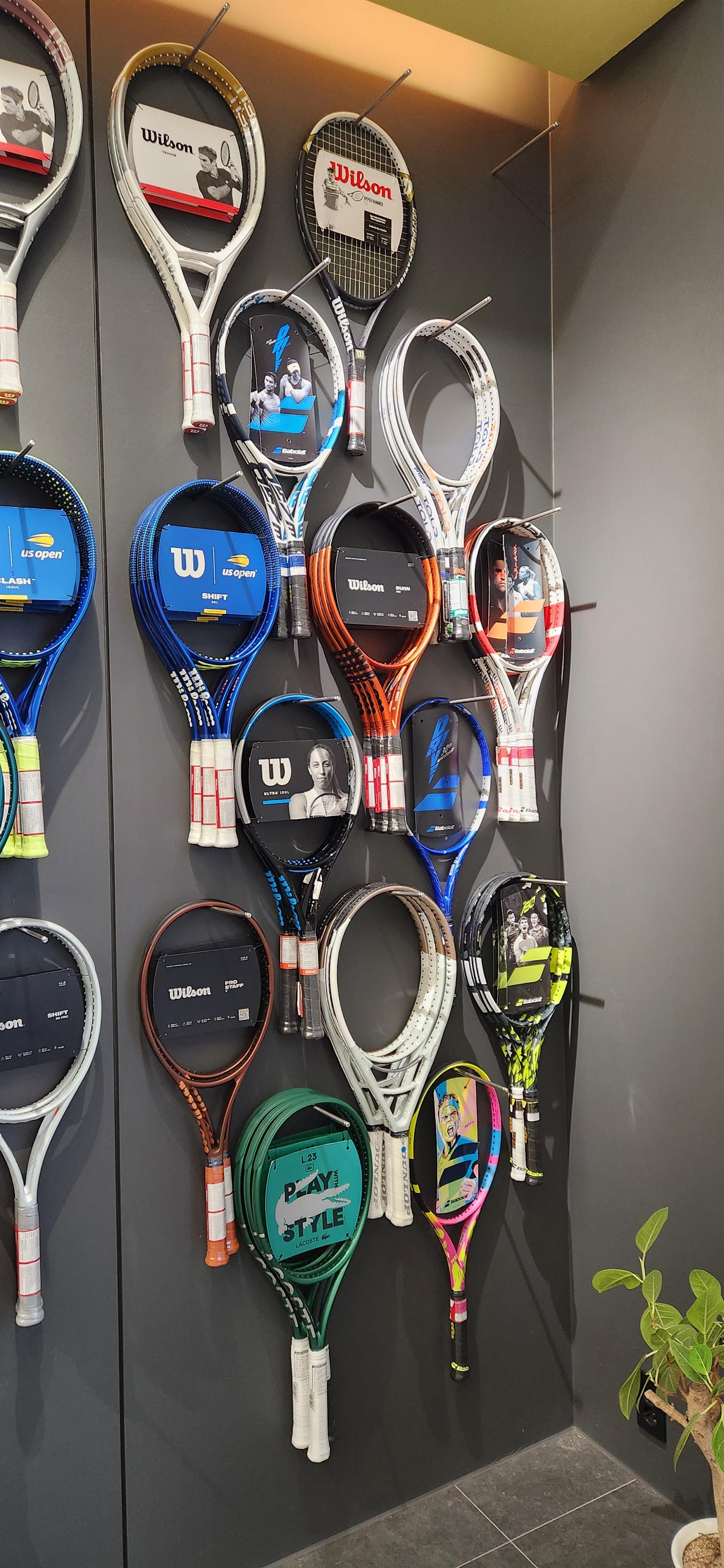 스포츠공간의 테니스라켓 종류는 실로 어마어마했다. 브랜드별로 수많은 라켓을 어떻게 고를 것인지 고민이 될 수도 있지만 실제로 답은 간단하다. 사장님한테 추천받아 보면 된다. 저 위의 라켓 고르는 법을 읽어도 잘 판단이 안서는 테린이를 위해 정성어린, 그리고 프로다운 조언을 받아 나에게 적합한 라켓을 선택할 수 있다.