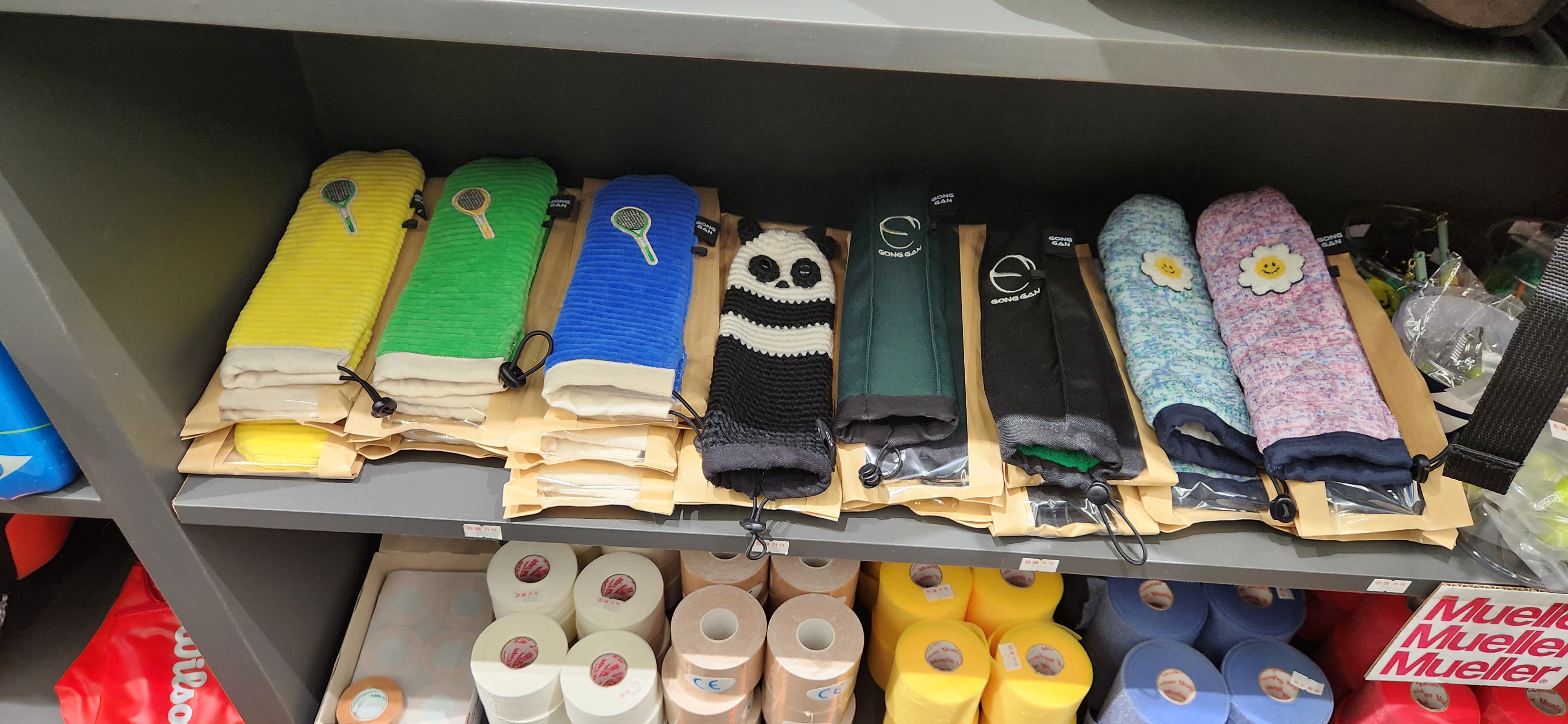 헤어밴드와 손목아대는 동호인들이 제일 선호하는 나이키의 여러 상품이 구비되어 있다. 옷하고 신발 빼고는 모든 테니스용품을 눈으로 보고 구매 가능한 매장이다.
