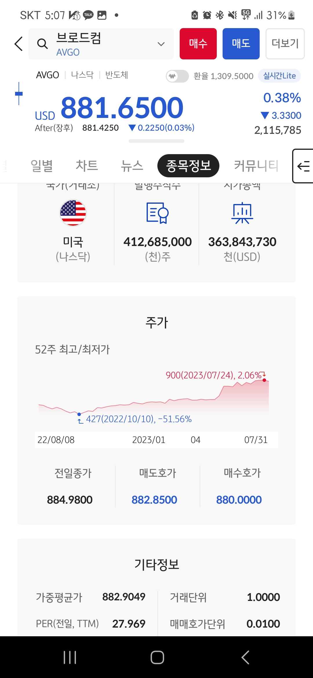 아래 차트를 보시면 52주 신고가와 신저가가 표기되어 있습니다.