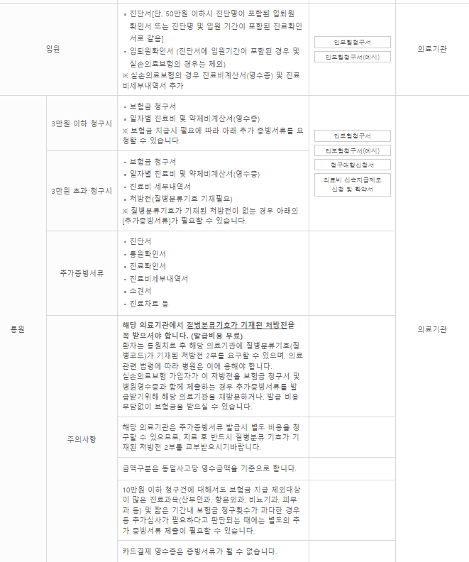 진료비 영수증, 진료비 세부내역서, 약국 영수증