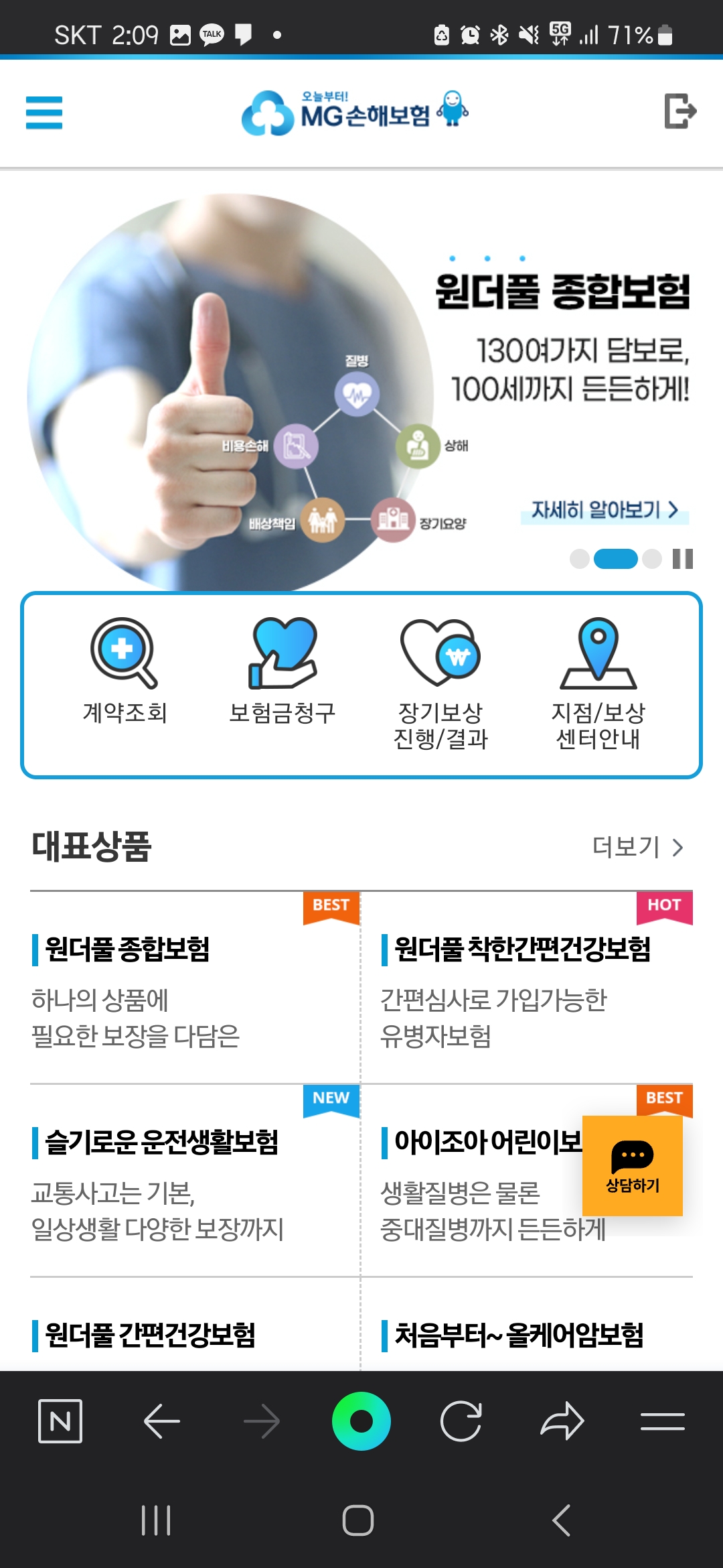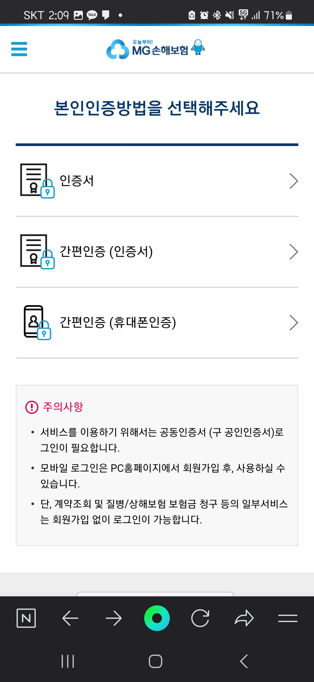 MG손보의 어플이나 앱으로 신청은 불가하므로 플레이스토어에서 찾는 수고를 하지 마세요.