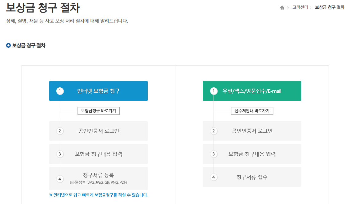 보험금 신청이 어렵고 모르는 부분이 있는 경우 고객센터로 전화하시면 친절하게 안내해 드립니다. 통화하시면서 신청해 보세요. 비싼 보험금 내고 보험금청구가 귀찮고 어렵다고 차일피일 미루거나 미신청한다면 너무 낭패입니다.